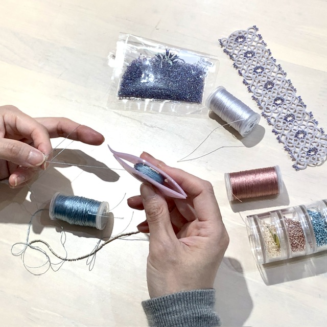華奢なピアスを作っても、なかなか糸を使わないので、少し幅のあるブレスレットを作ることにしました。