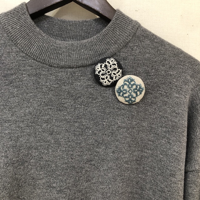 少し複雑ですが、細い糸を使うことでブローチサイズになりました。