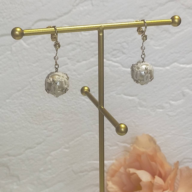 軽くて質感の美しいコットンパールをタティングレースで包みます。ビーズも入れて華やかに…