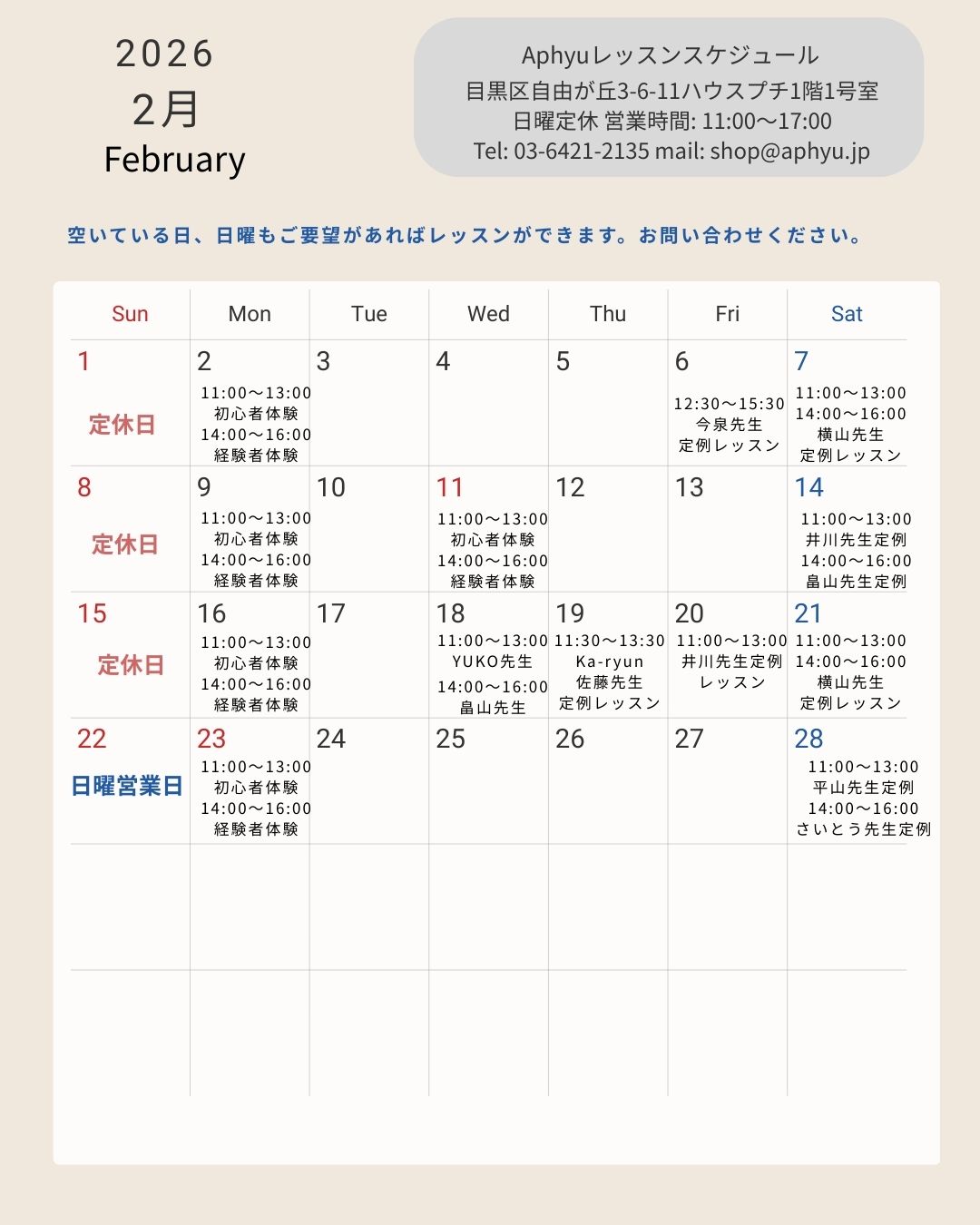 ●先生方のレッスンは先生に空きを伺ってからのご予約となります。