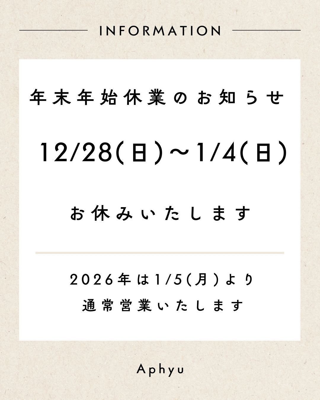 年末年始は12/28(日)〜1/4(日)までお休みします