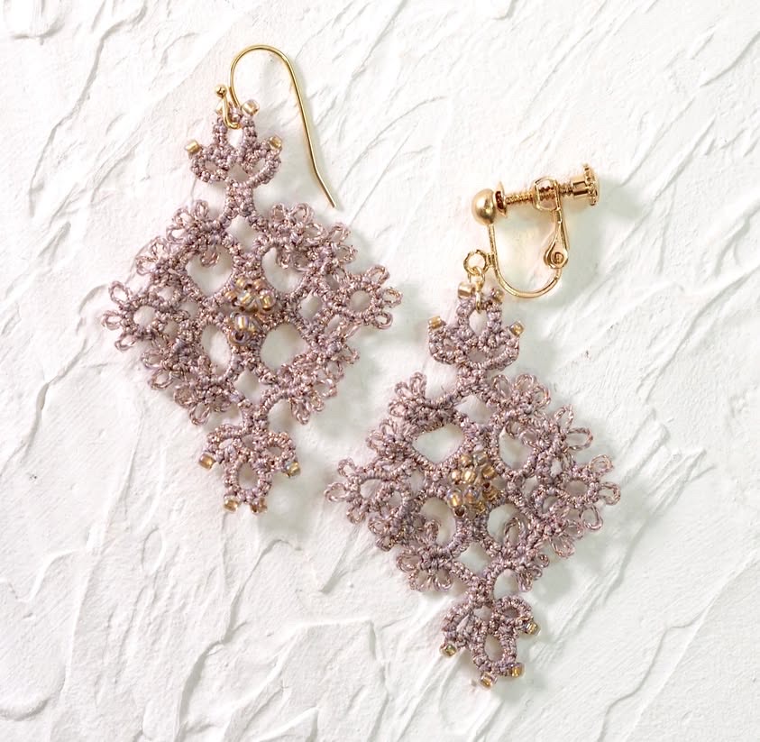 【送料無料】Ka-ryun 佐藤先生オリジナルキット 縁取りモチーフのピアスサイズ:高さ約3cm、横約2.5cm(タティング部分のみ)タティング初級者さんでも楽しめるビーズタティングのモチーフピアスで…