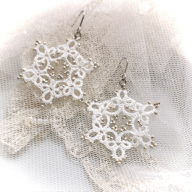 - > 【11/10発送予定】【送料無料】3目だけでできるスノーフレークピアス