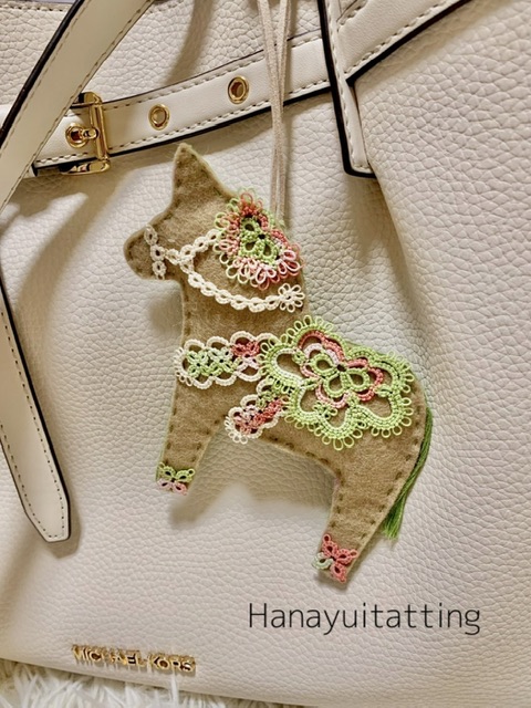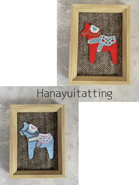 *ダーラナホースの型紙(プリント)もお渡しするので、色を変えたり、サイズを変えたり、タティングのデザインをアレンジしたりして、レッスン後にご自身で何個でも作れます。