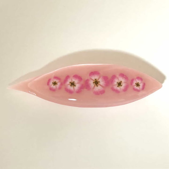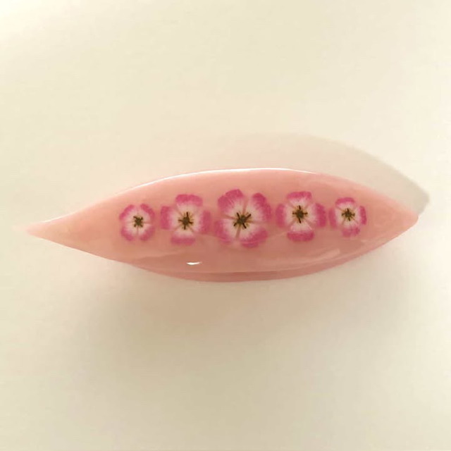 ドイツ製ポリマークレイを使った猫の目工房特製ミルフィオリ(金太郎飴細工のような棒状の模様)を透明樹脂で何層にもコーティングしました。