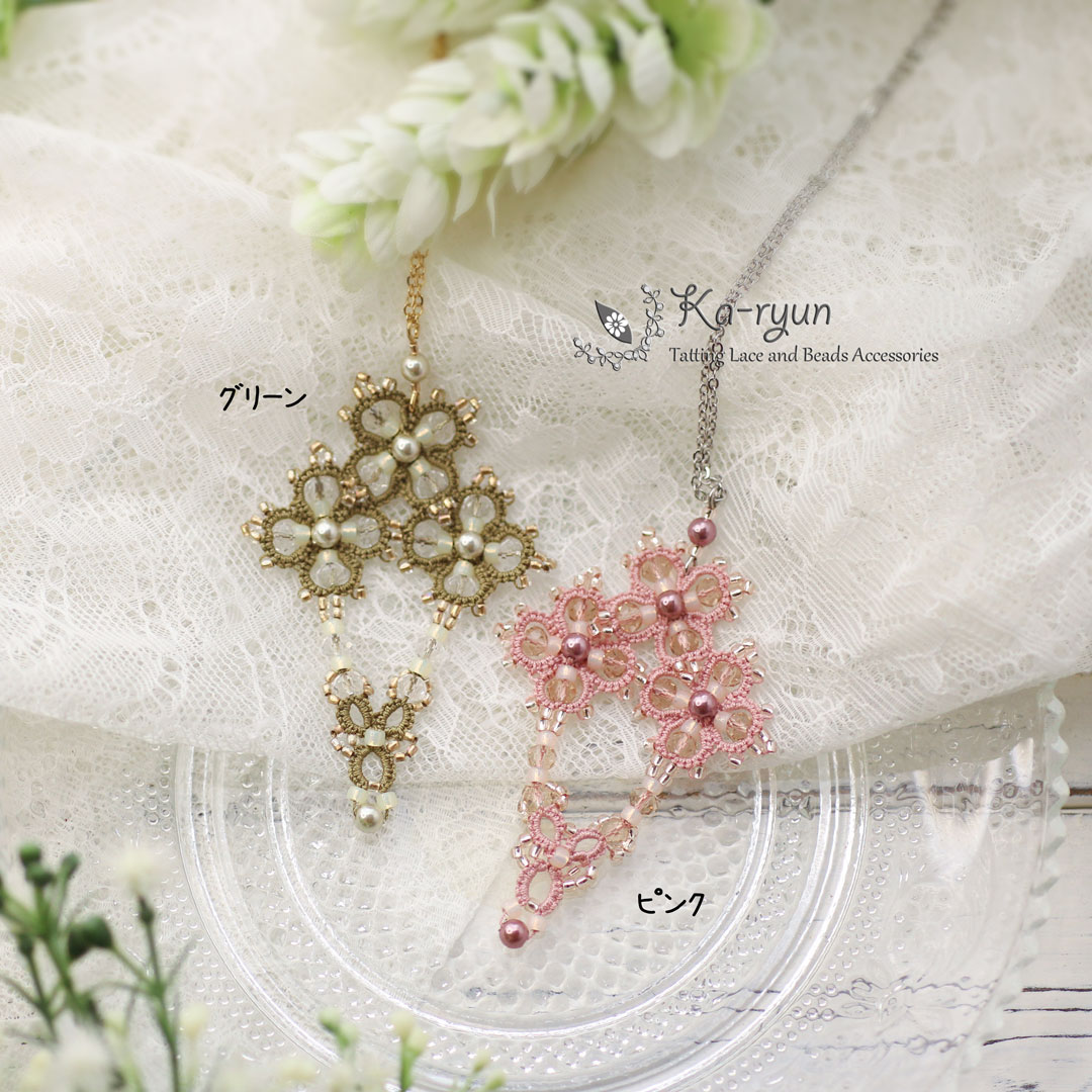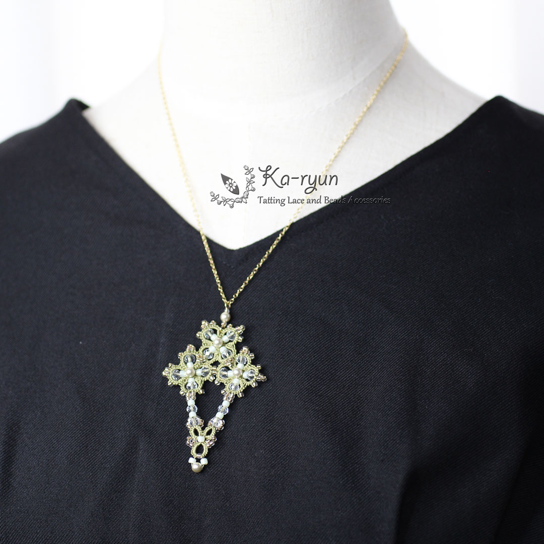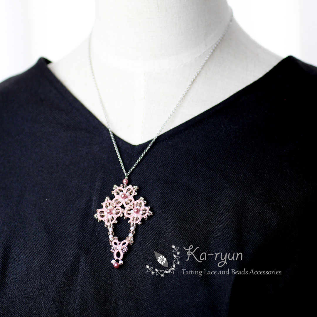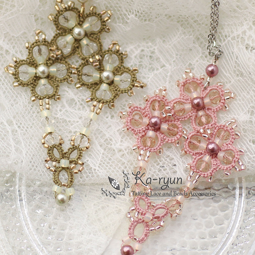 基本的なタティングモチーフをつなげて作ったペンダントです。